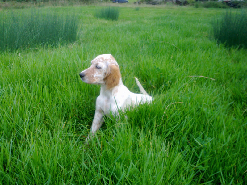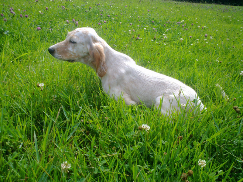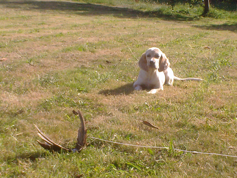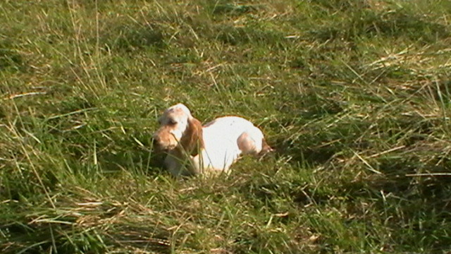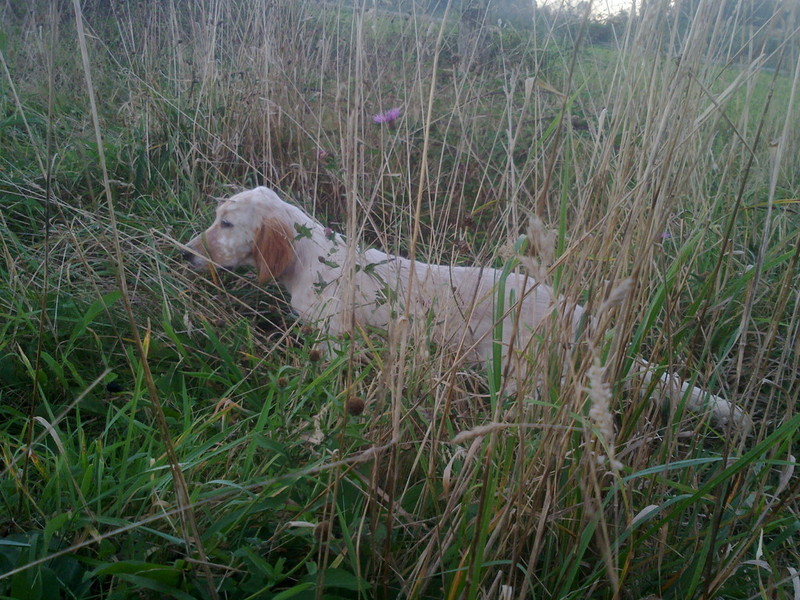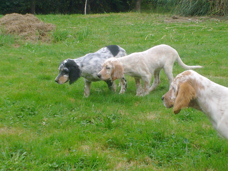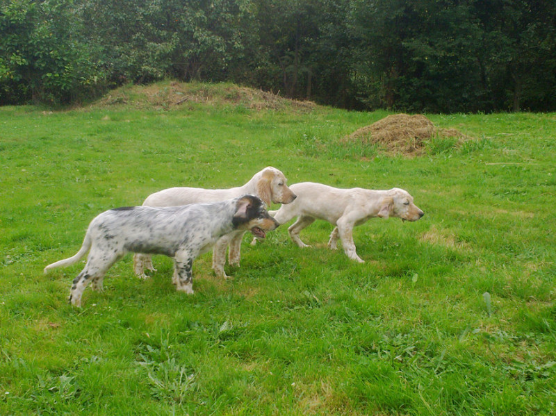 Cachorros (Asia, Alexia y Anglet) mostrando engaño y codornices