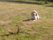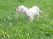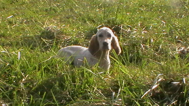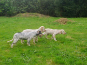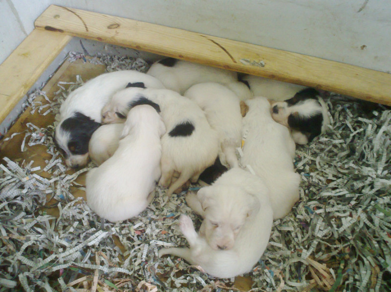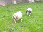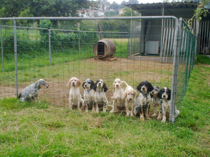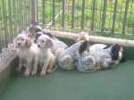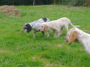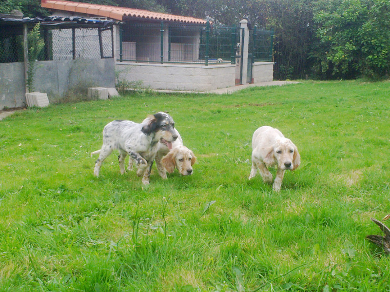 Cachorros (Asia, Alexia y Anglet) con 3 y 4 meses a codornices
