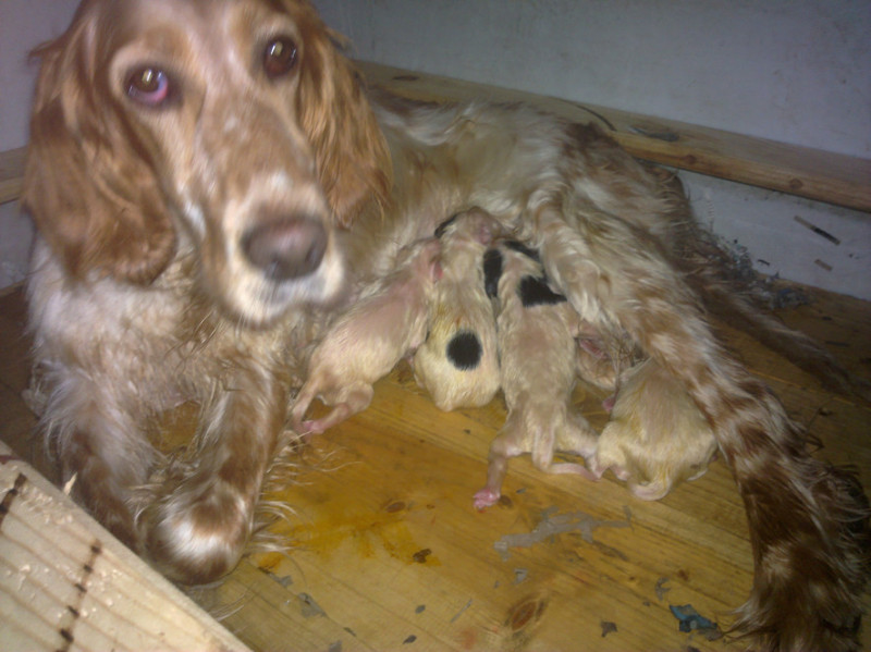 Con Codornices (Cachorros de Ulma y Visón mostrando el engaño y codornices)
